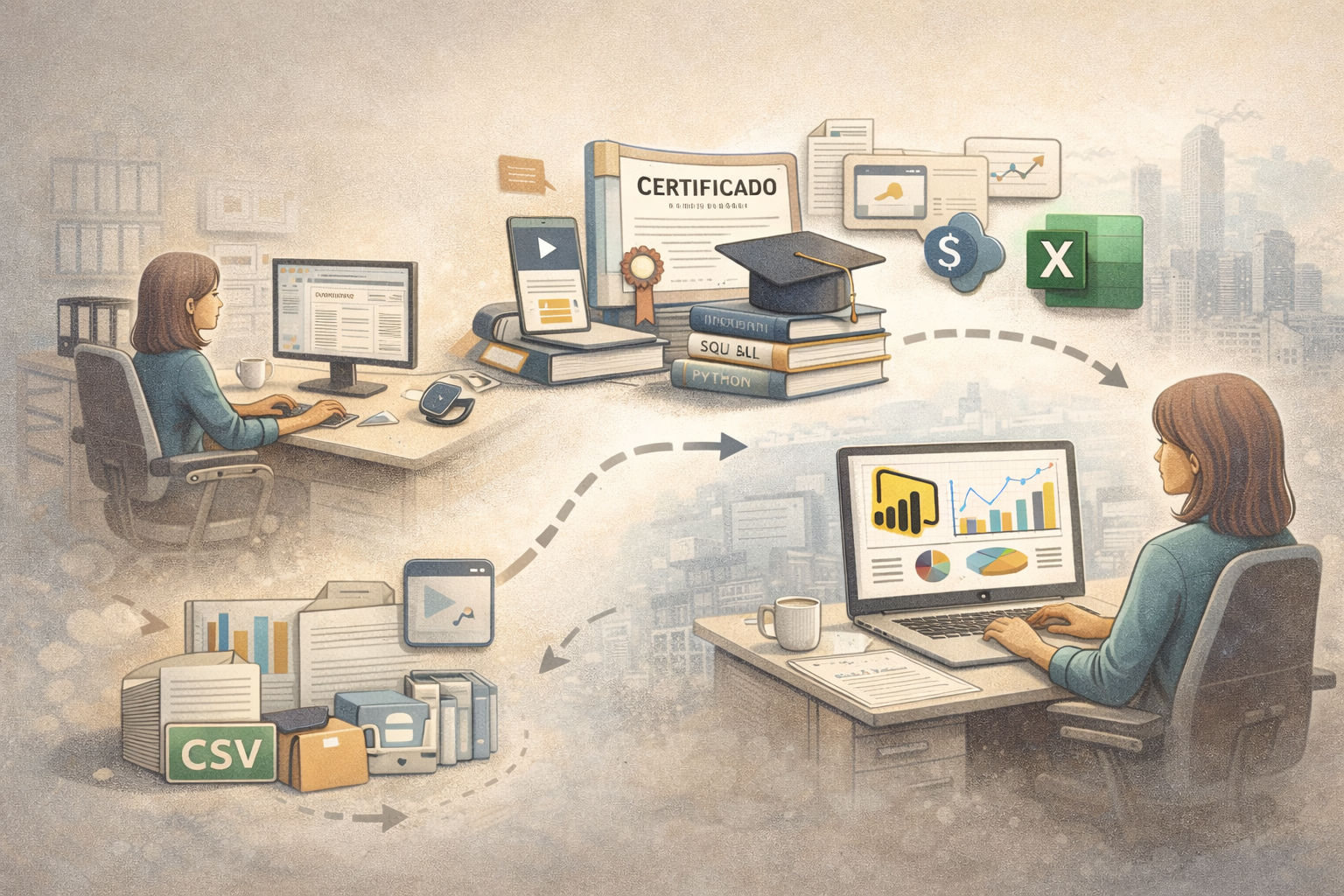 Después de SQL, llegó Power BI. Y con él, todo cambió para mí. Descubrí lo que realmente me apasiona: transformar los datos en valor. En este caso, hice un curso a través de Fundae (te recomiendo que le eches un vistazo, puedes encontrar muchos cursos interesantes y gratuitos si estás trabajando o apuntada como demandante de empleo).